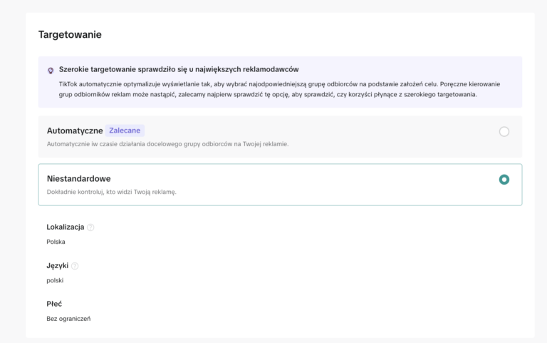 ROI kampanii zależy od tego, czy trafiasz do właściwych osób. W związku z tym, TikTok daje całkiem precyzyjne możliwości targetowania: