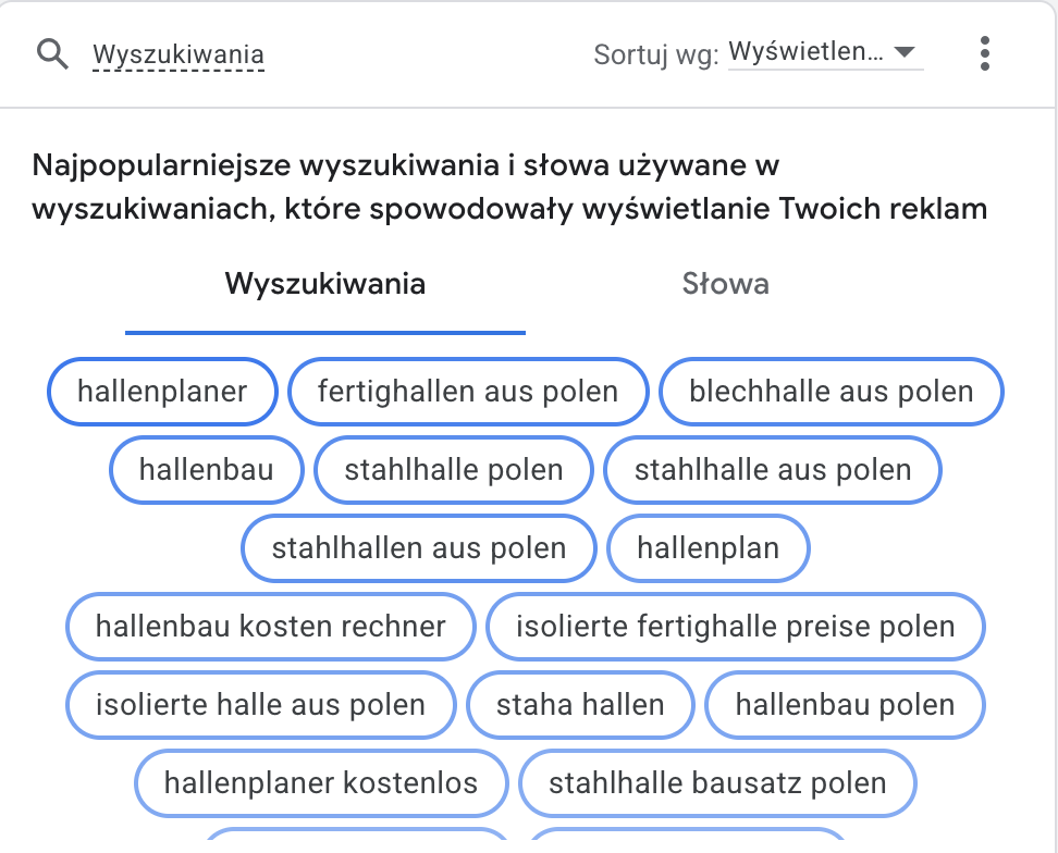 Przeprowadzona została analiza wyszukiwań, która pokazała, że użytkownicy z Niemiec coraz częściej poszukują wykonawców hal stalowych z Polski. Na tej podstawie kampanie zostały zaplanowane osobno dla rynku polskiego i niemieckiego, z dopasowaniem słów kluczowych i komunikatów do realnych intencji inwestorów, co jest kluczowe w skutecznej reklamie B2B na rynkach zagranicznych.
