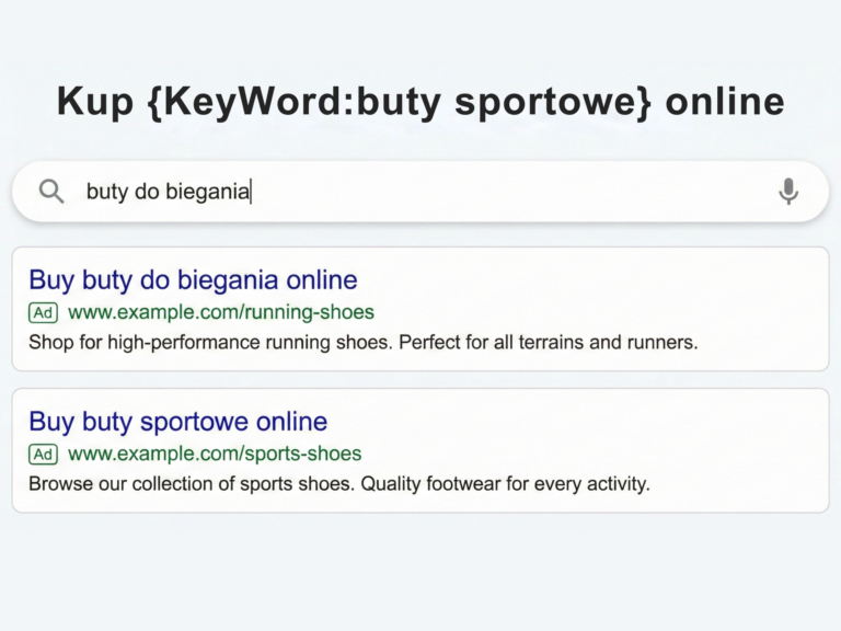 W praktyce polega to na tym, że w treści reklamy, najczęściej w nagłówku lub opisie, umieszcza się specjalny znacznik. Gdy reklama zostaje wyświetlona, Google automatycznie podmienia ten fragment na słowo kluczowe, które spowodowało jej wyświetlenie. Dzięki temu reklama „dopasowuje się” do zapytania użytkownika bez konieczności tworzenia osobnych wersji dla każdej frazy.